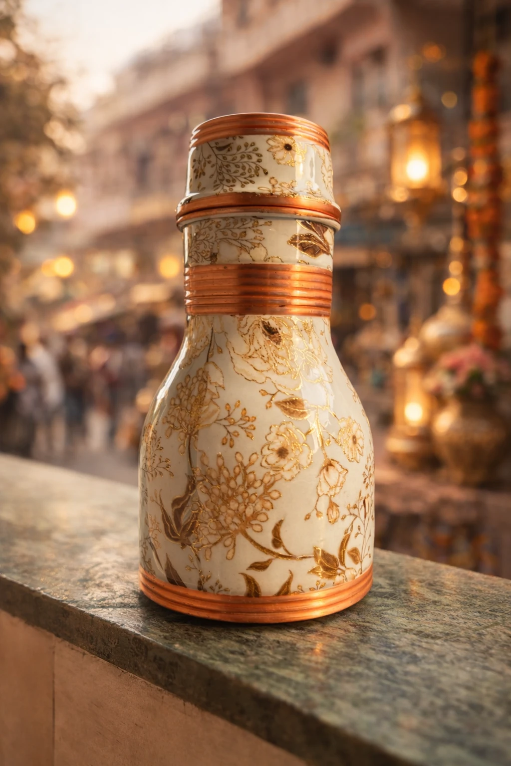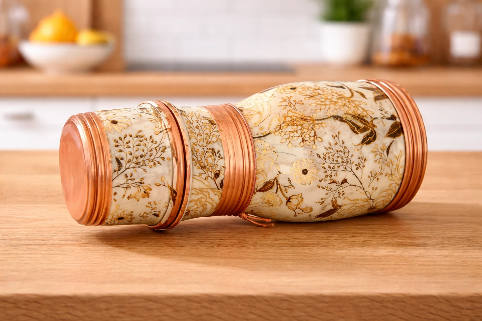 Elevate your kitchen aesthetics with the timeless charm of our 3D Meena Charlie Jar, a perfect blend of traditional Indian artistry and modern functionality. Crafted with precision, this jar features intricate 3D Meenakari floral detailing paired beautifully with rich copper accents, making it a true statement piece.