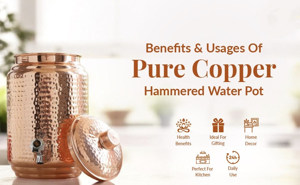 Ideal for storing and cooling water, the natural properties of copper help keep your water fresh and impart subtle health benefits. Its generous 10-litre capacity makes it perfect for daily use in homes, offices, or gatherings.